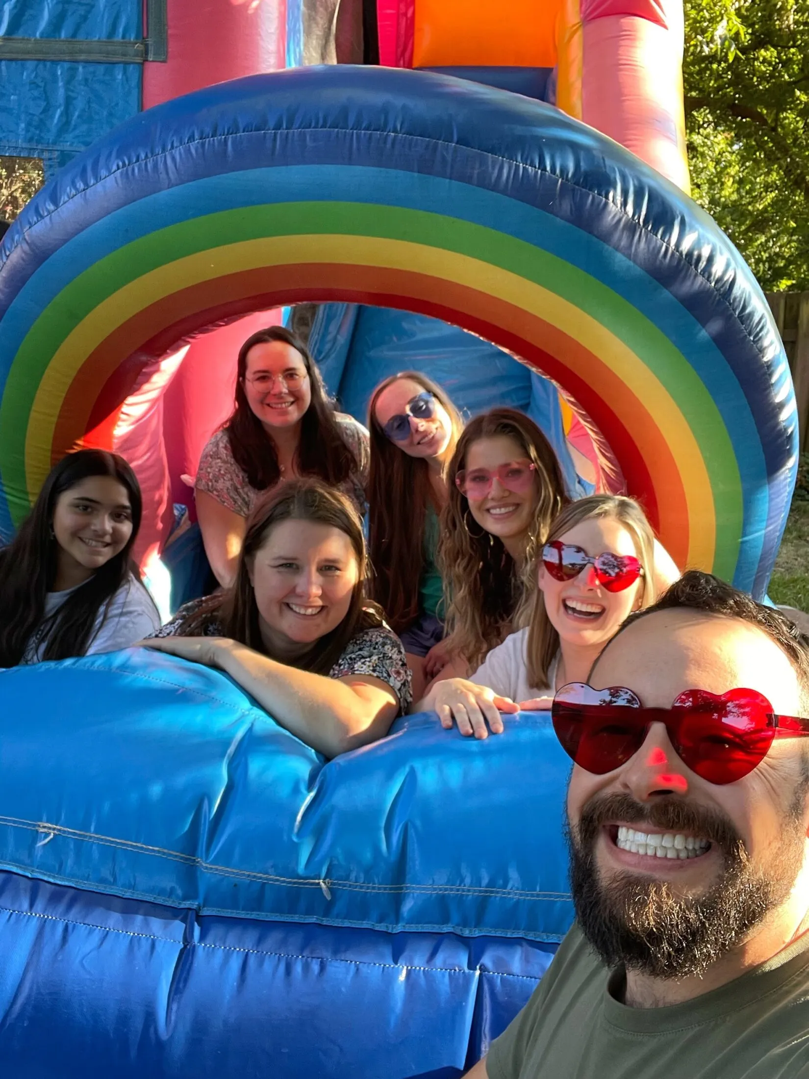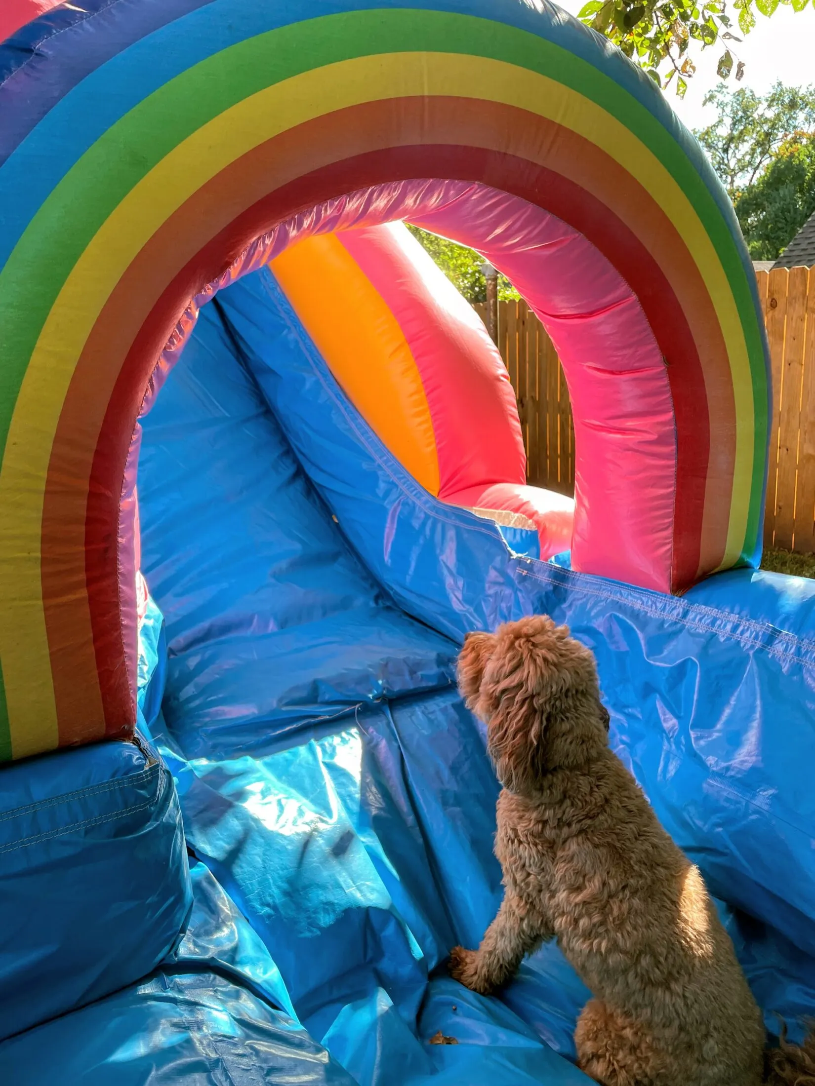 There was just one other thing she really wanted—a giant 27-foot rainbow unicorn bounce house and slide.