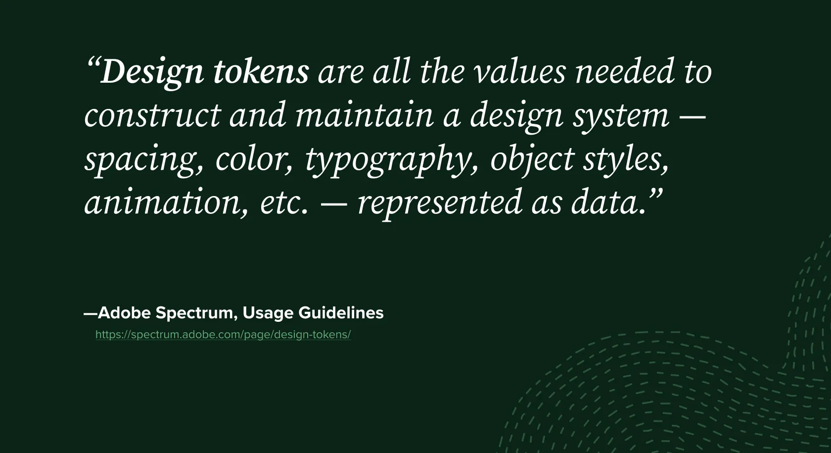 Essentially design tokens take the subtle, overarching patterns that already exist in the design system. It codifies and turns them into variables.