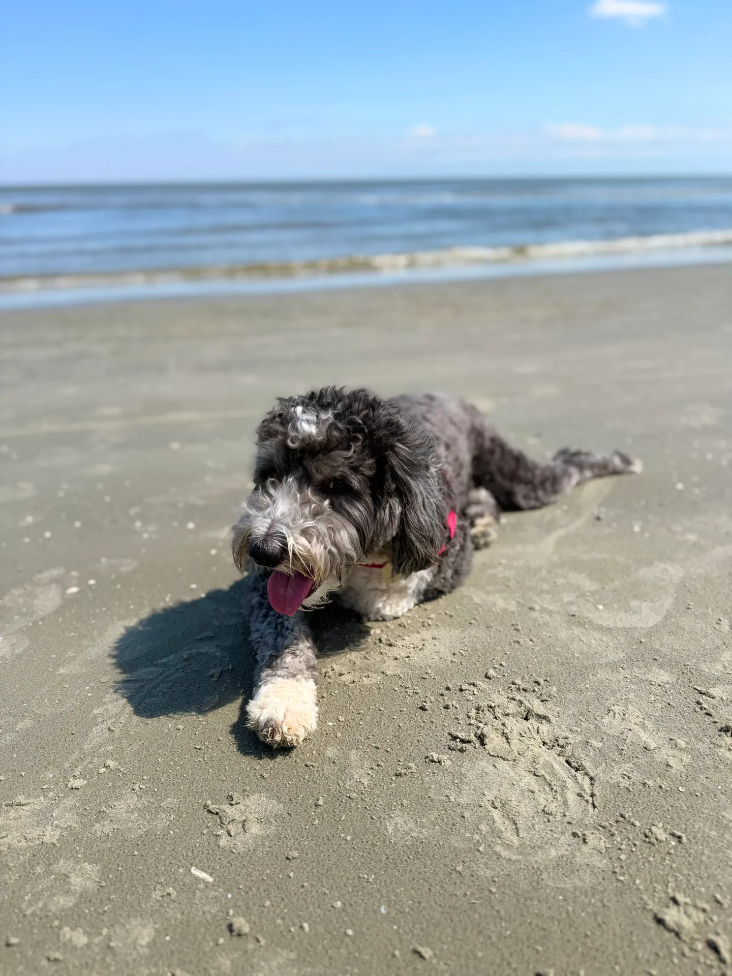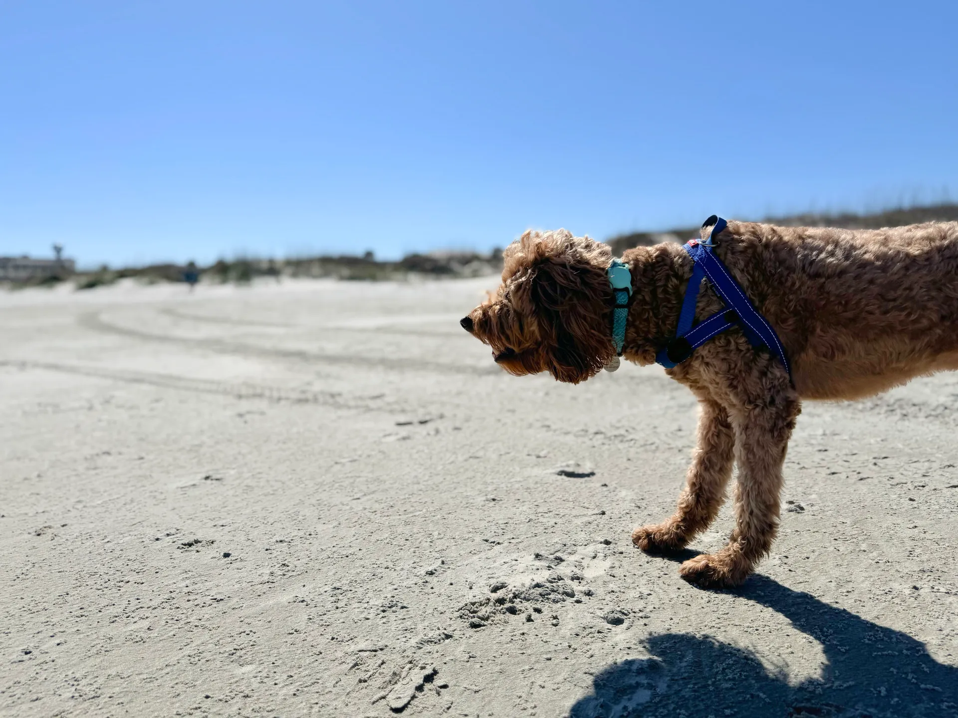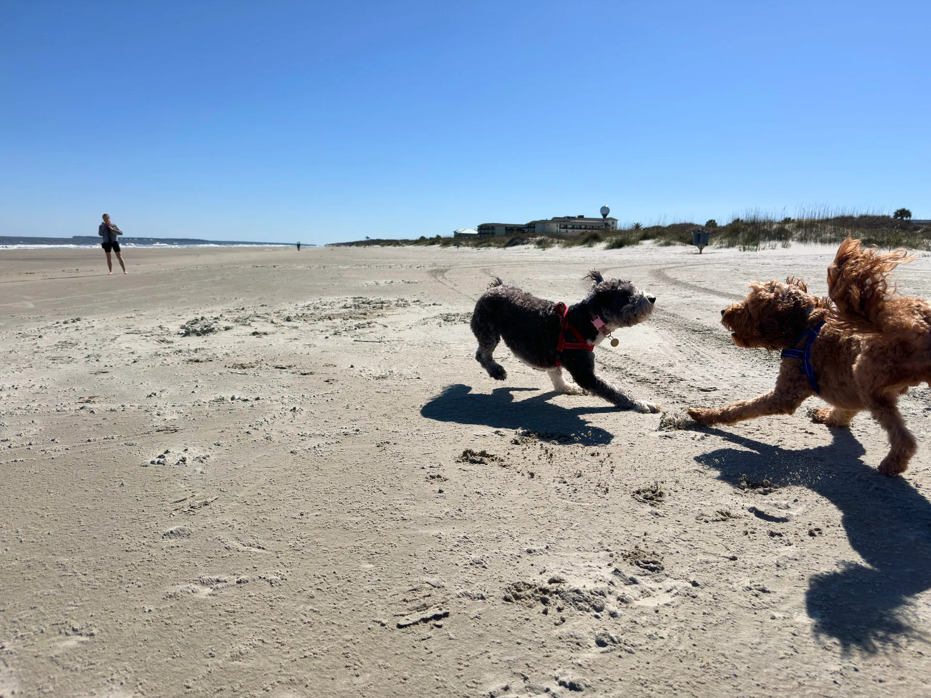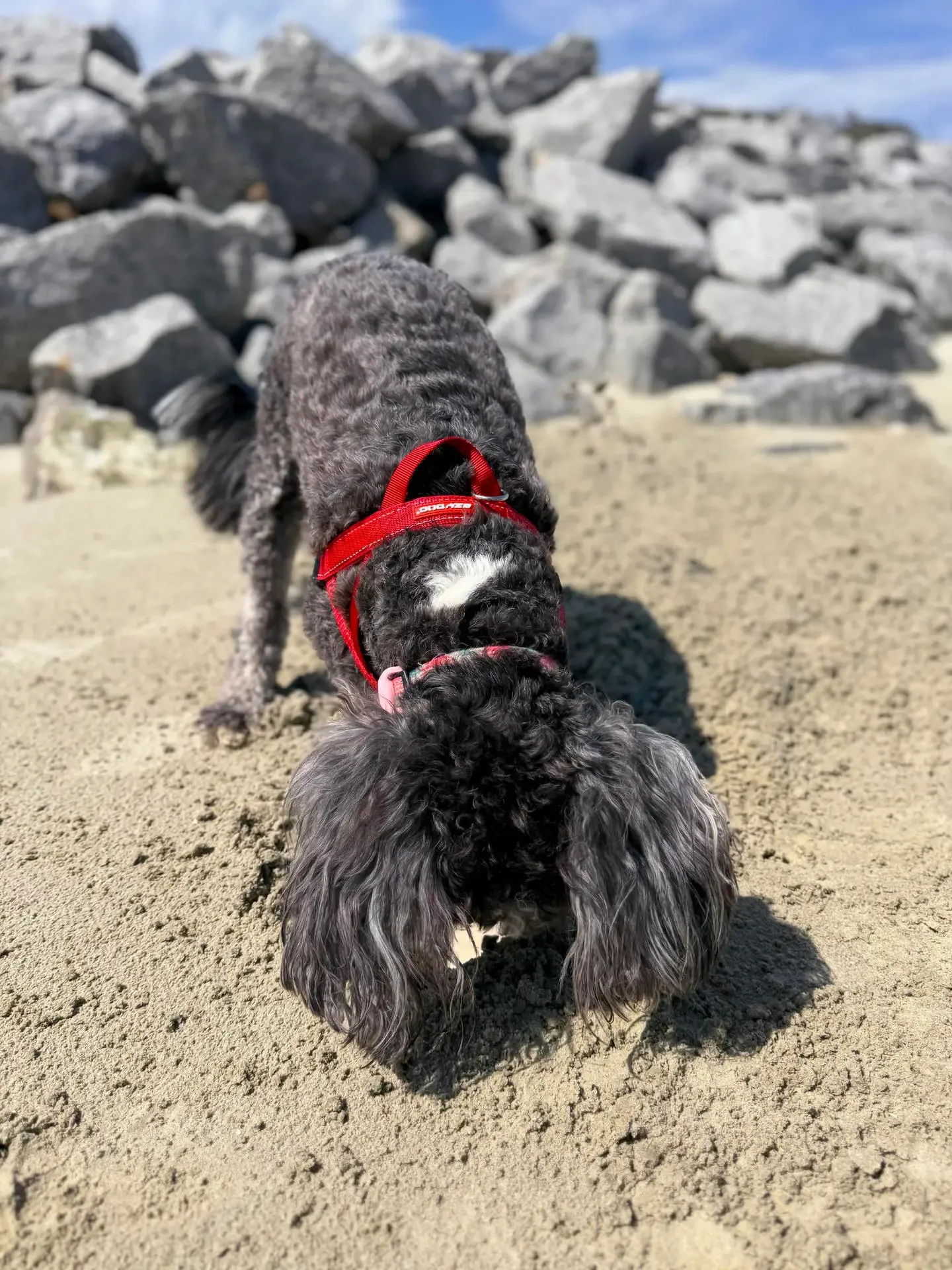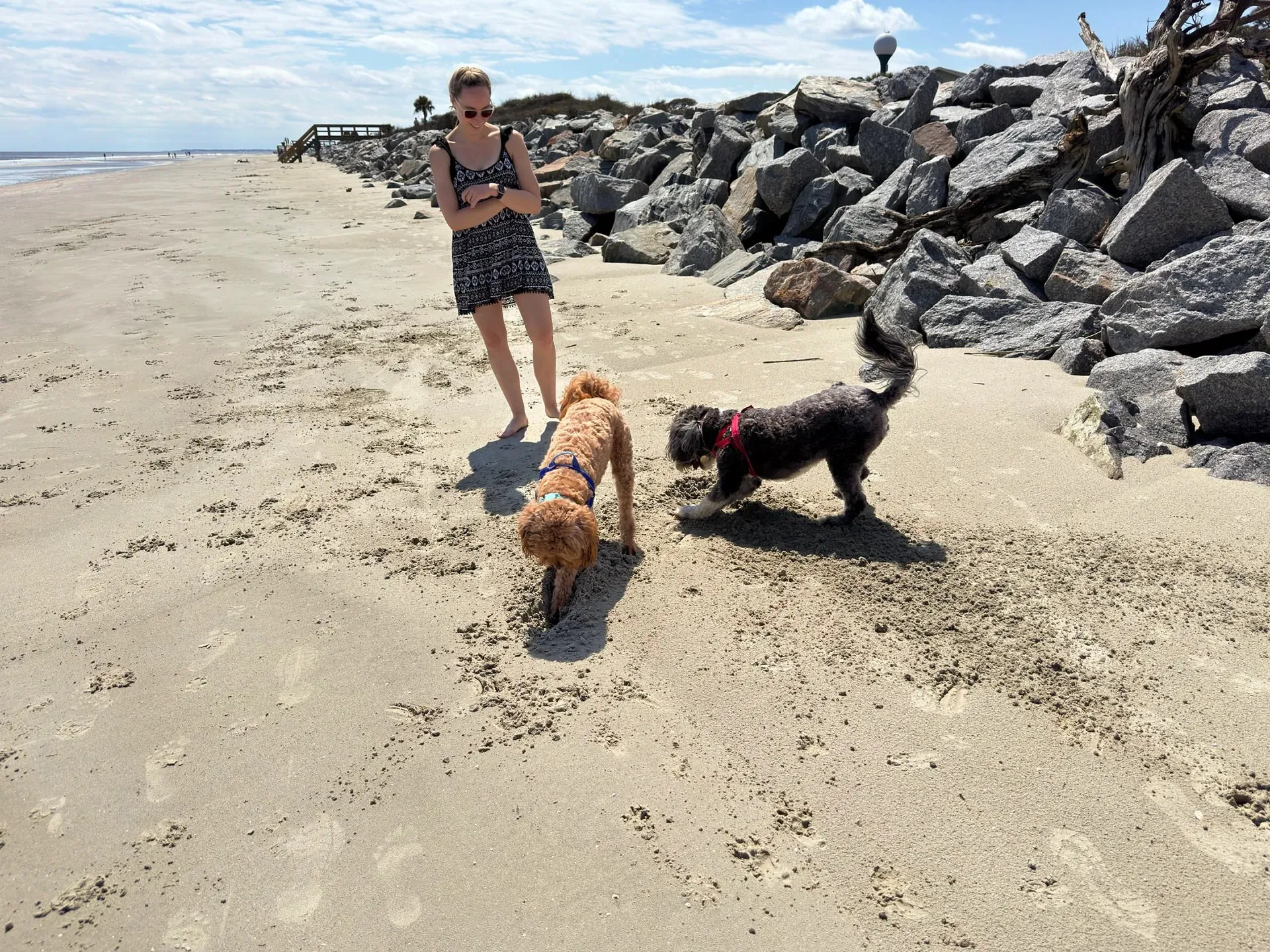 For our dogs, the beach means digging without getting shouted at—so that’s always the first thing we do.