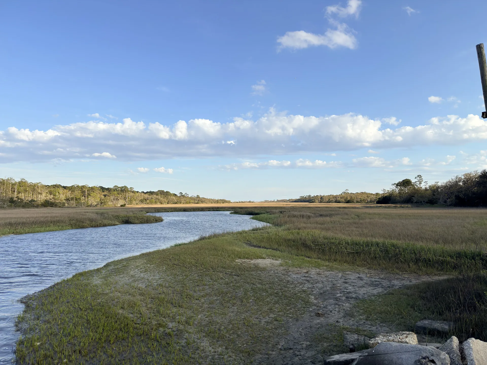 We hiked alongside the water, around the northern tip of the island, where you can easily spot the houses on St. Simons Island across the way.