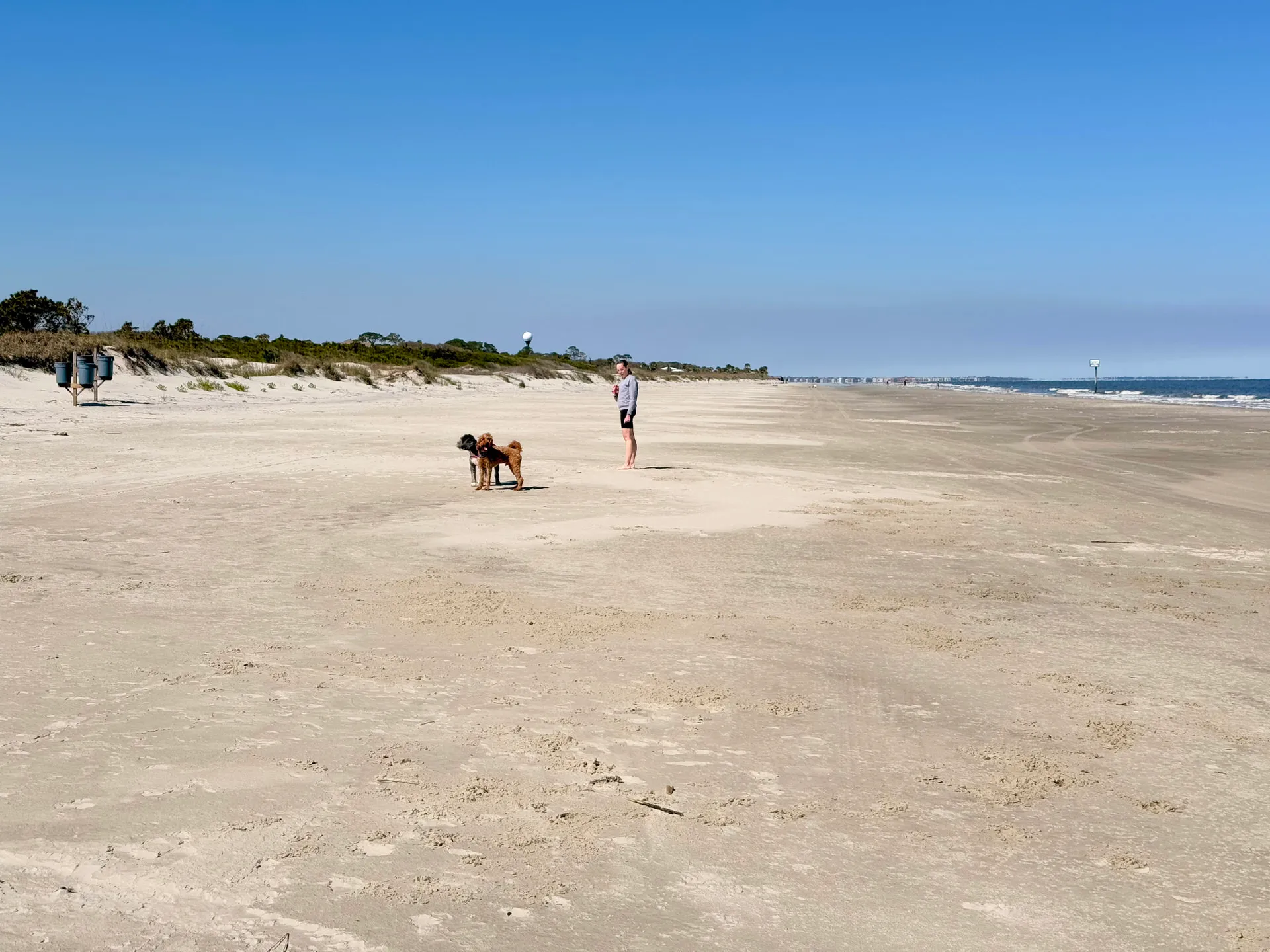 This time we drove a little south to Dunes Beach. We hung out on the there a bit more and tried to tire out the dogs so we could leave them and go for a bike ride around the island that evening.